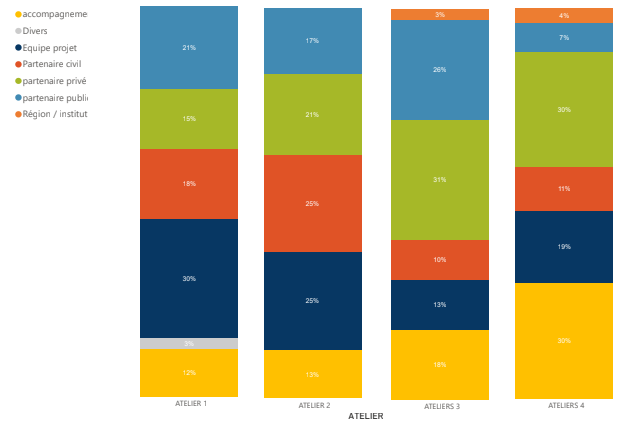 – 18 % de partenaires d’accompagnement (recrutement progressif entre l’atelier 1 à 4) ;