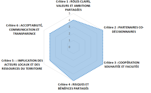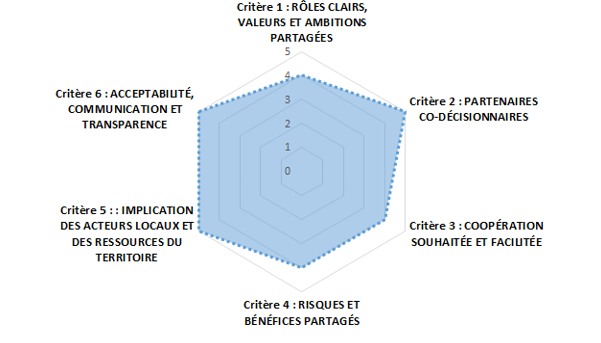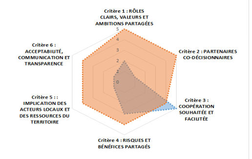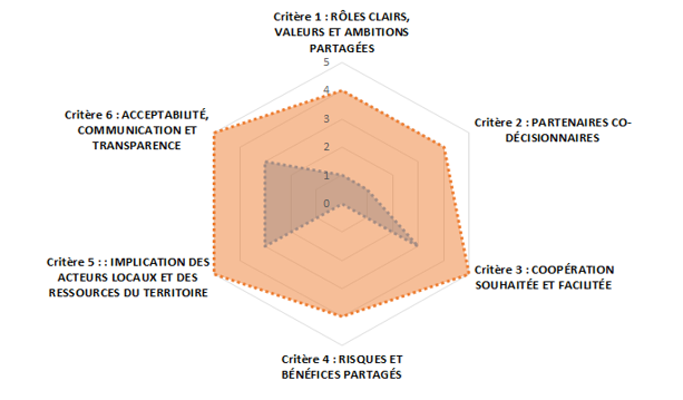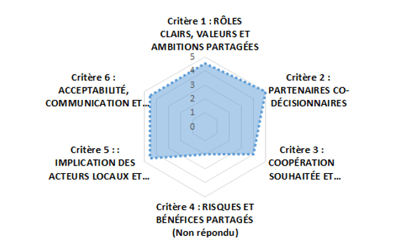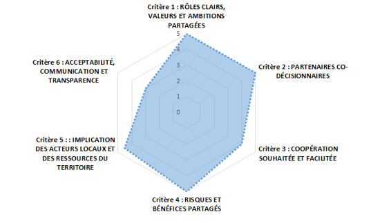 Au total, ce sont 12 roues qui ont été complétées par les porteurs de projets (3 lors de l’atelier #2, 6 lors de l’atelier #4 et 3 lors de la phase “recherche en ligne”). Pour la plupart des porteurs de projets, les critères étaient clairs et facilement compréhensibles et remis en contexte par les sous-critères qui les accompagnaient. 10 porteurs de projet sur 12, ont auto-évalué leur projet en l’état actuel. 2 porteurs de projets ont spontanément décidé de le faire en deux temps : s’attribuer des notes bien distinctes, une pour une situation antérieure de démarrage du projet et une pour la situation actuelle. Cette évaluation de la situation passée et de la situation présente a permis de rendre compte de la marge de progression de leur projet sur certains critères et de ce fait de donner un caractère dynamique à cette roue qui pourrait être utilisée à plusieurs étapes d’un projet pour marquer la progression du projet. Une des roues a également était complétée par plusieurs membres d’une même équipe projet avec des notations qui diffèrent très légèrement.